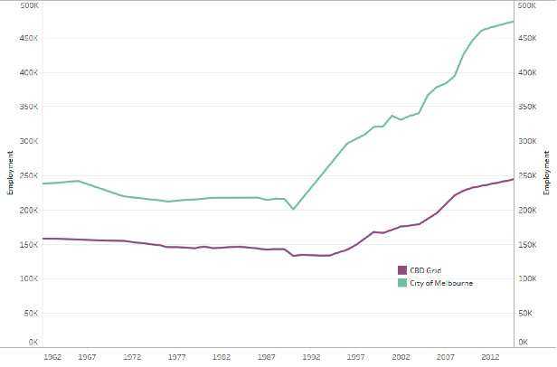 Figure 3 Central city employment – Melbourne – 1962 – 2013