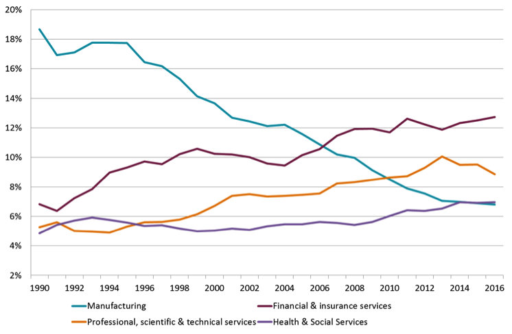 Figure 1 GDP shares in metropolitan Melbourne; selected sectors