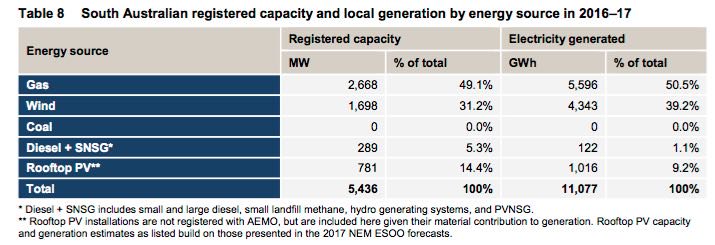 Indeed, the AEMO report notes that more than 48 per cent of South Australia’s generation in 2016/17 came from wind and solar.