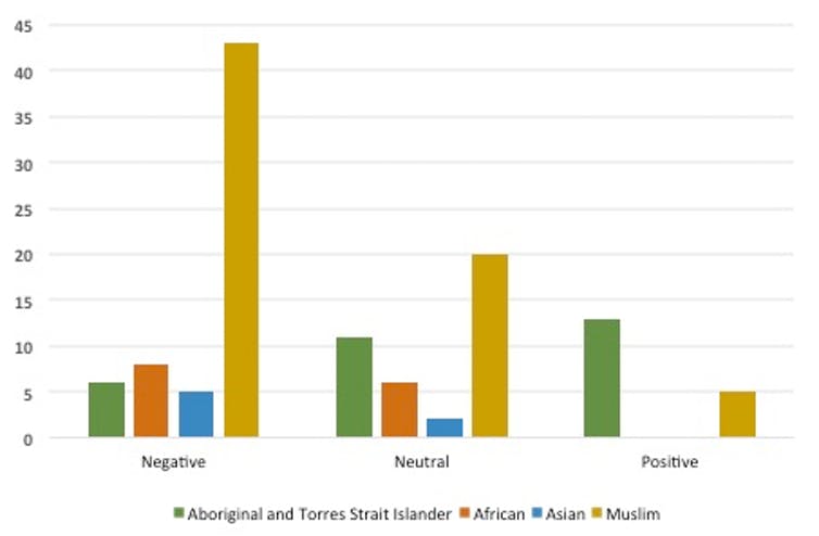 This was a recurring theme in race-based opinion pieces over the study period. In contrast, there were more positive than negative stories about Aboriginal Australians and Torres Strait Islanders.