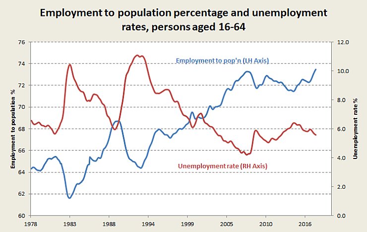 The strongest trend has been the erosion of full-time employment. In 1978, 85 per cent of people at work were in full-time jobs: now it’s just below 70 per cent. Among men the decline over the same period has been from 96 per cent to 83 per cent.