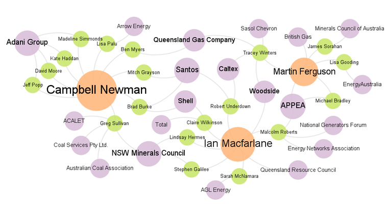 We have compiled a database of more than 180 individuals who have moved between positions in the fossil fuel and/or mining industries and senior positions in government, or vice versa, over the past decade. This includes senior political staffers working for prime ministers and state premiers. We have also found examples of key ministers hiring individuals straight from the fossil fuel and mining industries, who then return to those industries straight after leaving government. This revolving door might be better dubbed a “service elevator”, ensuring that “delivery of the goods” happens away from public scrutiny.