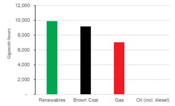 However, the second largest source of electricity across the main grids of the NEM and South-West Interconnected System was zero emission renewables with 9,880GWh. It was 8% greater than brown coal and 40% more than gas.
