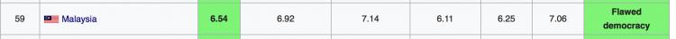 In fact, Malaysia is rated as a far from perfect democracy in the international independant rankings, and all denizens will know why. It comes 59th on the list of 168 countries in The Economist’s list, just above Mongolia, and it is placed in the category of a ‘Flawed Democracy”.