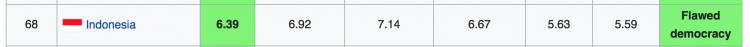 We then have two so-called ‘Flawed Democracies’, including nearby Indonesia, which these days looks near to beating Malaysia on the Democracy Index (it was a much reversed situation a decade or so ago), standing at number 68.