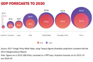 A caveat must be inserted here. The IMF’s figures and the foreign affairs department’s projections both assume that China’s GDP figures are correct, and that China will not suffer an economic downturn in the foreseeable future.