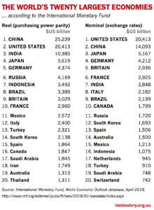 That is the measure the IMF uses in its analysis. Here is its list of the twenty largest economies on a PPP basis and, for comparison, the top twenty using exchange rates: