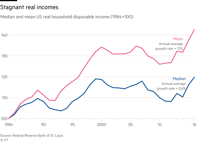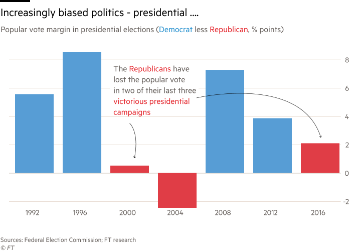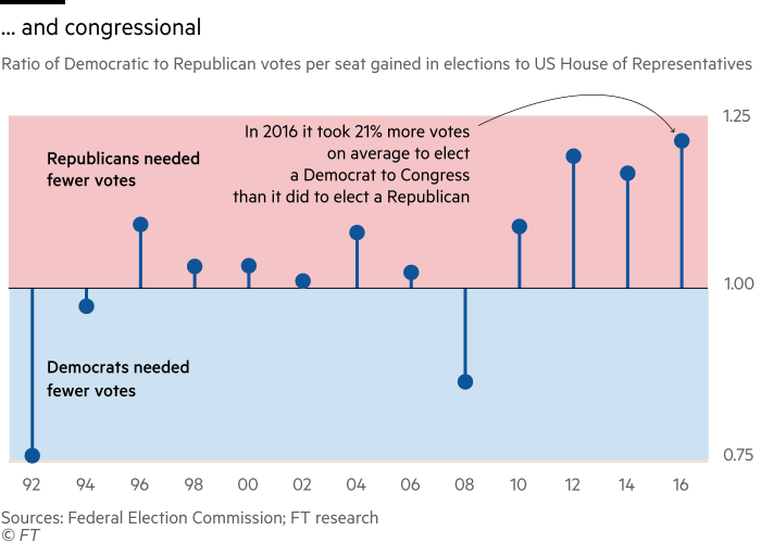 The poor state of so many Americans is in part the product of plutocratic politics: a relentless and systematic devotion to the interests of the very rich. As I have argued before, a politics of low taxes, low social spending and high inequality is sustainable in a universal suffrage democracy only with a mixture of propaganda in favour of “trickle down” economics, splitting the less well off on cultural and racial lines, ruthless gerrymandering and outright voter suppression. All this has indeed happened. These are the politics of “pluto-populism” or of “greed and grievance”. They have been stunningly successful in making Republicans attractive to many in the white working class. The structural biases in voting are also remarkable. In the past three elections for the House of Representatives, it took 20 per cent more voters for the Democrats to win a seat than for the Republicans, on average. Republicans have also won the presidency twice in the last two decades despite losing the popular vote.