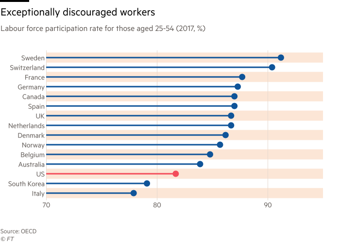Yet something still more important is happening. The striking feature of the US economy is that, despite its unique virtues, it has recently served the majority of its people so ill. The distribution of income is exceptionally unequal. Labour force participation rates of prime-aged adults are exceptionally low. Real median household disposable incomes are the same as they were two decades ago, while mean incomes are much higher. Uniquely, mortality rates of middle-aged white (non-Hispanic) adults have risen since 2000 in the US. Mr Trump loves to tweet his shock over every high-profile terrorist outrage in Europe. But, in 2016, there were just 5,000 murders in the EU, a rate of one per 100,000 people (including terrorist attacks). There were 17,250 murders in the US, a rate five times greater. Mr Trump might start to worry about that.