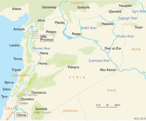 Other potential flashpoints remain. West of Deraa, on the volcanic plain that stretches to the Golan escarpment, another patchwork of rebel groups includes residual elements of Islamic State hemmed in by other Islamist and militia elements. Israel is keen to see Islamist forces, particularly Hezbollah, kept away from the disengagement lines west of Quneitra. West and north of Aleppo, meanwhile, Turkish forces occupy the Afrin Valley and the hill country stretching around Aleppo from the west. To the east, the territory from Menbij to the Iraqi frontier has been taken by a joint American–Kurdish operation, its future undefined. Other areas outside the Syrian government’s direct control include much of Idlib province, the destination for fighters who refuse to accept “reconciliation” deals with the government.