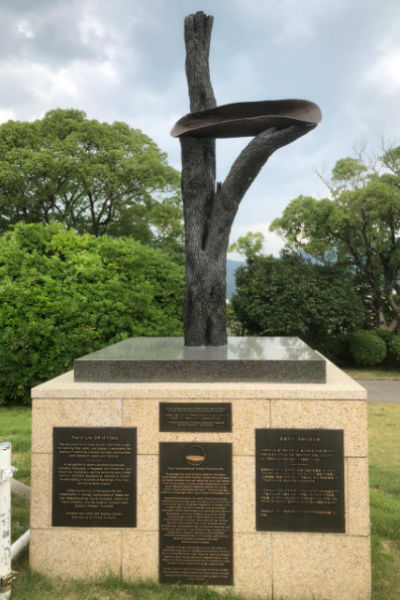 Just last month, the Jesuit superiors of South East Asia gathered at Nagasaki for a meeting. They visited the Nagasaki Peace Park where they saw the ‘Tree of Life: Gift of Peace’, a sculpture in bronze by Indigenous Australians, John Turpie and Stephen Harrison from Maralinga, the Aboriginal community in South Australia which was used as a British nuclear test site between 1956 and 1963. Our Department of Foreign Affairs website notes: ‘The sculpture stands as a stark reminder of the close ties between Australia and Japan, two nations who have survived firsthand experiences of nuclear weapons, albeit from very different perspectives. The torn, roughly cut tree embodies the post-nuclear landscape of the land on which it sits. A uniquely shaped piti dish, an Aboriginal symbol of peace, with the tree as its donor, perches at the top. The work embodies the resilience of both its donors and its recipients and stands as a symbol of friendship.’