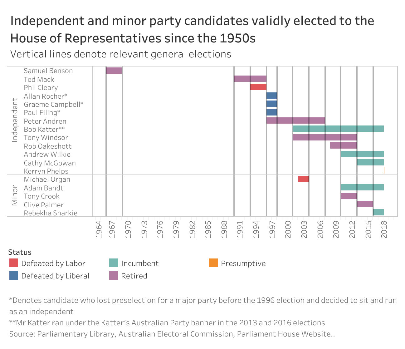 Only 12 independents have been elected to the House of Representatives since 1950, and the majority of those had past connections with party politics.