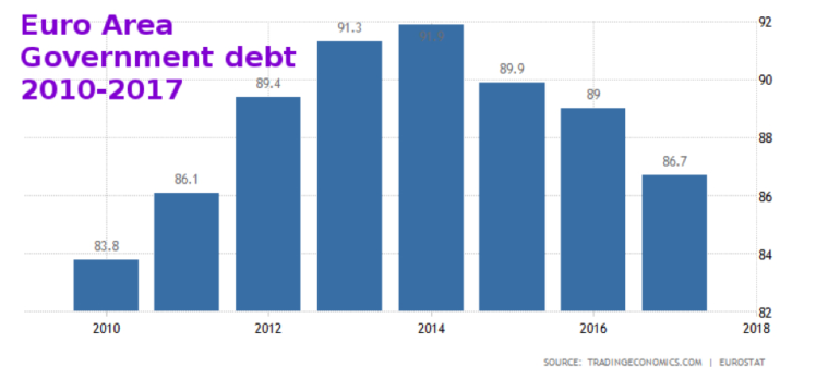 From 2013 onwards, most well-managed economies have been steadily repaying their debt. Germany’s was reduced from 81 per cent to 63.9 per cent by 2017. The Netherlands reduced theirs from 68 per cent to 58.7 per cent. Ireland’s debt is down from 120 per cent to 68 per cent and Iceland’s has gone from 94.7 per cent to 42.3 per cent.