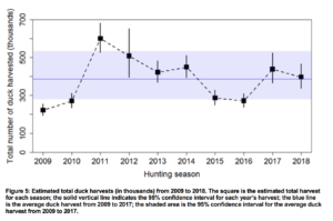 Returning to waterbirds, it’s disappointing that in Tasmania, South Australia and Victoria it is legal to shoot ducks – in a country where native wildlife is supposed to be protected. In Victoria alone, as the graph below demonstrates (page 18 of the report from the Victorian Game Management Authority), approximately 400,000 ducks are ‘harvested’ each year – based on the shooters’, no doubt honest, self-reports. Better look out, ducks, the three months of legal massacre is now open for all those good sports with guns; you’d be safer if you were a brumby. What a literally bloody disgrace!