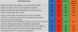 In the context of persistent global poverty, rising inequality and the imminent climate crisis it is clear that we need to rebalance the global economic system so it is oriented towards social prosperity rather than private profit. This requires a trade and investment system that is transparent and democratic, complies with international human rights and environmental law, preserves government’s power to regulate in the public interest, and redresses the power imbalance between corporations and workers. So, with the federal election announced for May 18, how do our political parties rate on trade policy?