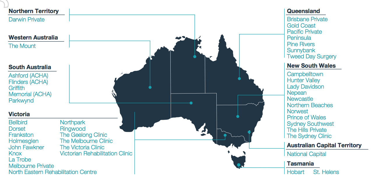 Moreover, as Cayman Islands is a secrecy jurisdiction, the identity of the directors of the entity which controls the hospitals in Australia remains a secret. Every state and territory has a Healthscope hospital.