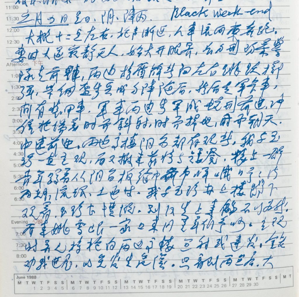 A page from the June 4, 1989, entry in the diary of Li Rui, one of Mao’s personal secretaries, with the heading ‘Black Week-end’