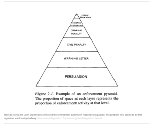 How Ian Ayres and John Braithwaite conceived the enforcement pyramid in responsive regulation. The problem now seems to be that regulators want to stop halfway.