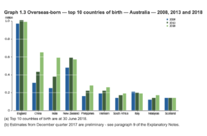 There were 83,000 more Chinese-born and 24,000 more Indian-born than New Zealand-born people living in Australia in 2018. At 5.0 per cent, the number of Chinese and Indian-born Australian residents together exceeded those born in England (4.0 per cent) by a quarter million. Can anyone honestly say this remarkable contemporary reality is reflected in our quotidian social and political discourse?