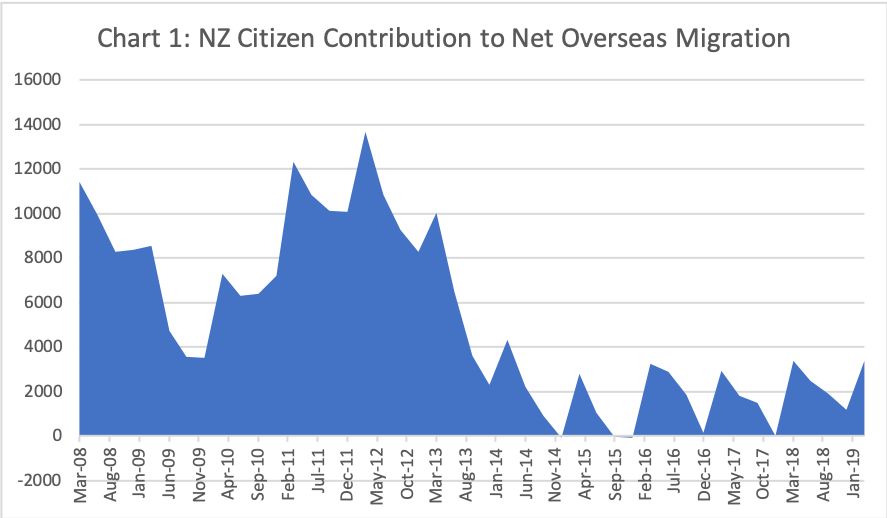 New Zealand citizen contribution to net overseas migration, the way the ABS measures the contribution of migration to population growth, has been in steady decline since 2013-14 (see Chart 1).