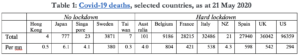 Meanwhile the statistics point to an interesting geographical counterpoint to a long-standing geopolitical discourse about Australia’s national identity. Based on our low number of infections and deaths, we quite clearly belong to Asia rather than the North Atlantic community. Or deaths stand at 4.0 per million people. But when put into the Asian context, this is not quite so impressive as the politicians would have us believe, which is also the narrative that journalists seem mostly to have bought hook, line and sinker. Against Asian benchmarks, with lockdowns Australia and New Zealand are at the higher end of the spectrum despite the reality that very few of our Asian neighbours locked down their countries (Table 1).