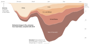 Greenhouse gas emissions also fell as COVID’s star rose, reaching a daily 17% decrease in early April. Road transport and shipping were the hardest hit sectors, accounting for about 40% of the reduction. As was expected though, emissions are rapidly returning to normal as countries return to business as usual and they are now only 5% down. Before the recent outbreak in Beijing, China’s emissions were just about back to pre-COVID levels.