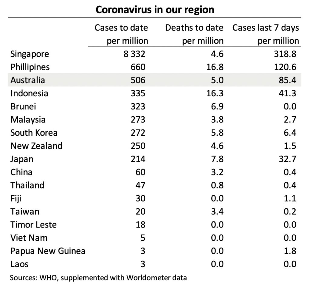 Data from prosperous “developed” countries including Japan, South Korea, Taiwan and Singapore can be regarded as reliable. So too can data from Viet Nam, for example, because incredulous experts, sceptical about their low rates, have been unable to find any manipulation of data. Singapore stands out for both its high case rate and low death rate. As explained by Kok Xinghui in the South China Morning Post, infections are mainly among young migrant workers in crowded accommodation, while among native Singaporeans there is very little community transmission. It’s a situation not wholly unlike that in Melbourne where infection has raced through crowded public housing blocks.