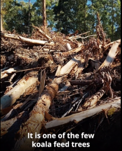 During last summer’s bush fires 5-10,000 koalas died and over 30% of their remaining habitat was destroyed. This 3-minute video shows the ongoing destruction of some of the last unburnt koala habitat by logging in the Lower Bucca State Forest near Coffs Harbour. Still, you can never have enough palettes and wood chip from native forests, can you. And what would we do with all those landfill sites if we didn’t fill them with our old growth forests?