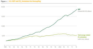 1 We may think of the USA as the bad boy of climate change mitigation but, credit where it’s due, their energy-related CO2 emissions peaked as long ago as 2008 and have been declining slowly since, even while GDP has continued to grow.