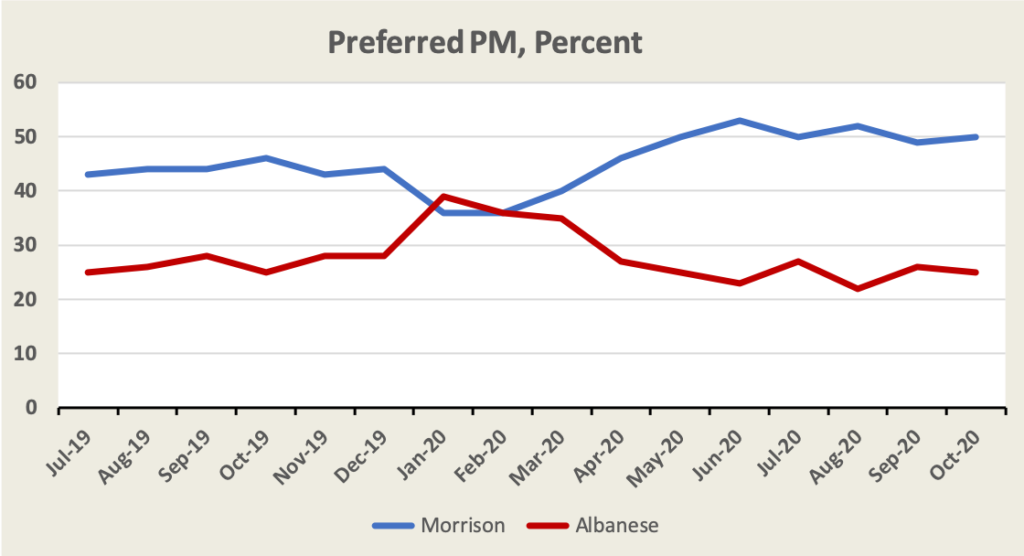 They also have their monthly questions on approval/disapproval and preferred prime minister. There’s not much movement, as shown in the two graphs below.