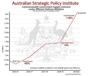 Moreover, under Minister Linda Reynolds the total value of government contracts awarded to ASPI has leapt by 126% over the past year.