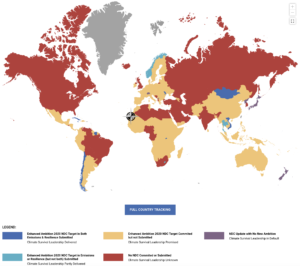 Established in 2009, the Climate Vulnerable Forum (CVF) is an international partnership of 48 countries in Africa, Asia, the Caribbean, Latin America and the Pacific, with a total population of 1.2 billion, that are most threatened by climate change. In some cases the threats are to the country’s very existence; in some cases the threats are to the health and lives of the inhabitants (see here for some examples). As well as building collaboration, commissioning research and building awareness, the CVF aims to encourage all nations, especially the rich, high emitters, to commit to ambitious action to tackle climate change through ramping up their Nationally Determined Contributions (NDCs). The world’s current NDCs, announced by each nation as part of the 2015 Paris Agreement, have the world on track for a disastrous 3oC of warming. As agreed in Paris, nations are required to upgrade their commitments by the end of 2020 – i.e., by midnight on 31 December. To focus attention on this deadline, CVF has launched Midnight Climate Survival to stimulate more ambitious action and monitor each nation’s promises. The map below shows the current state of affairs. There is, as you can see, a profusion of red and yellow that indicates that the majority of nations have either promised but not submitted more ambitious NDCs (this group includes Australia) or not made any commitment at all as yet. Somewhat surprisingly, New Zealand is one of a handful of countries that have submitted updated NDCs that show no increased ambition compared with 2015.