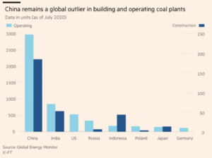 The two figures below tell an interesting tale. In 2019 China had 27% of the solar power and 43% of the wind power installations in the world - impressive. On the other hand, in 2020 it had by a long chalk most of the world’s currently operating coal fired power stations and most of those under construction.