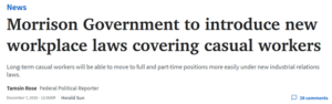 The Herald Sun didn’t even bother to report specifics, trotting out exactly what the federal government appears to want workers to know, praising the changes as an increase in job security for casuals.
