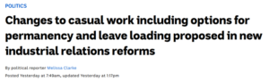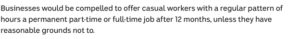 Plenty of talk about casual workers “earning a new right”; that they “must be offered a permanent role”; that they “will get the offer” of permanent work; that they have “options for permanency” and so on on.