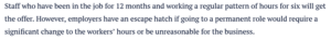 Buried in the fine print was the fact that the options all seem to be on the employers’ side - that “employers may not make an offer”; that employers can “block the conversion” to permanency on reasonable grounds; that employers have “an escape hatch” and so on.