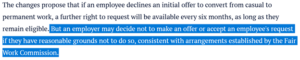 Plus there is the “reasonable” test for denying workers a conversion to permanent work.