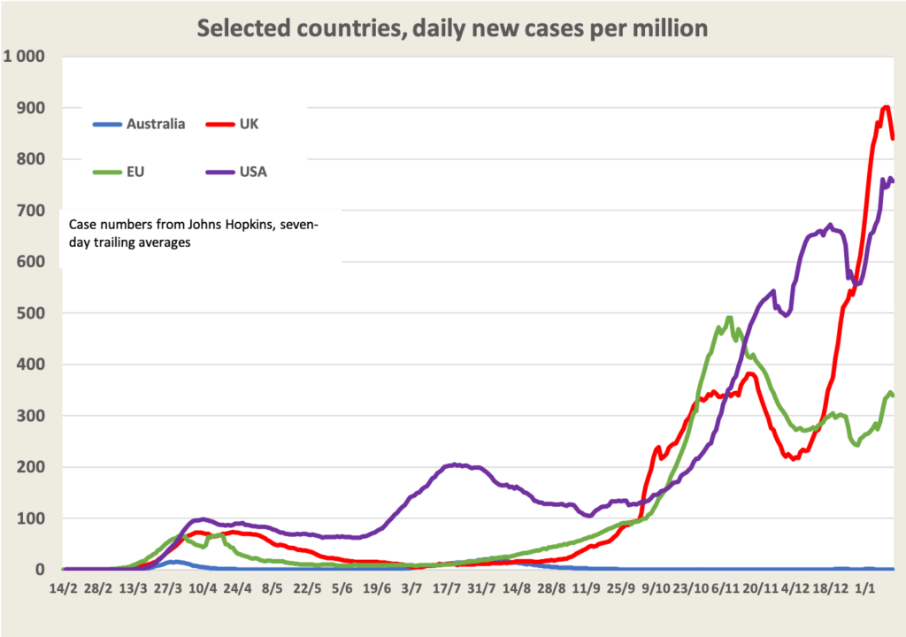 Although authorities have not linked the decision to pull forward a rollout of vaccination, the risk of development of a UK or US situation in Australia must surely be on their minds.