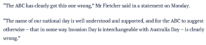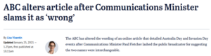 First, The Australian misrepresented the story on social media, claiming the ABC had used Invasion Day and Australia Day interchangeably (false). While the headline used both titles, the article itself was very clear.