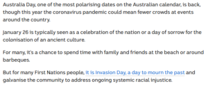 The article unambiguously referred to Australia Day in the first two words – and simply went on to mention that for many First Nations people, they regarded the day as Invasion Day.