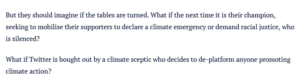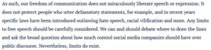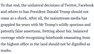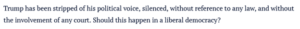 First, the idea that being banned from Twitter silences the voice of one of the world’s most powerful men seems almost laughable.