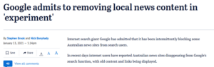 It’s hard to see the need for concern regarding Google’s experiments that have led to Australian media sites not appearing in the news.