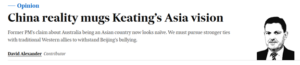 Furthermore, Alexander’s reference to “get[ting] hung up on the words democrat and democracy” was taken out of context when Keating was discussing China’s foreign policy in attempting to “democratise power” among countries in Africa, South America, and Brazil, China and India.