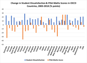 In contrast, several countries including Austria, Denmark, Estonia and Japan had only small increases in student dissatisfaction and small statistically significant changes in their PISA scores.