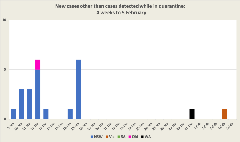 Some may look at our regular chart and note that Australia has had only two Covid-19 cases in the community in the past 19 days. That’s certainly the way Morrison has been talking about outbreaks from hotel quarantine.
