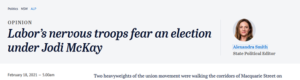 Alexandra Smith, the State Political Editor of the Sydney Morning Herald, rarely takes a break from being Gladys Berejiklian’s cheerleader.
