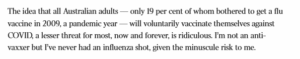 The Australian’s Adam Creighton’s brain was well and truly “fried”, to use his words, despite not even being in lockdown; undermining the effectiveness of the vaccine; and once more incorrectly claiming that the flu is worse than Covid.