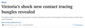 The Herald Sun’s idea of a contact tracing bungle included “authorities had incorrect contact details” (hard to contract trace if Victorians give authorities the wrong information).