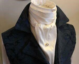 Stock ties were the civilian answer: usually just a piece of gauzy muslin folded into a long rectangle and wound several times around the shirt collar. The tie was fastened at the back with a pin, which was usually unseen because of long hair and wigs.