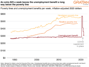 JobSeeker is one of the best forms of fiscal stimulus: people who are unemployed are likely to spend most of what they receive. Cutting the $75 a week supplement and replacing it with a lower but permanent $25 a week rise is a missed opportunity. It also means unemployed Australians will continue to languish well below the poverty line.